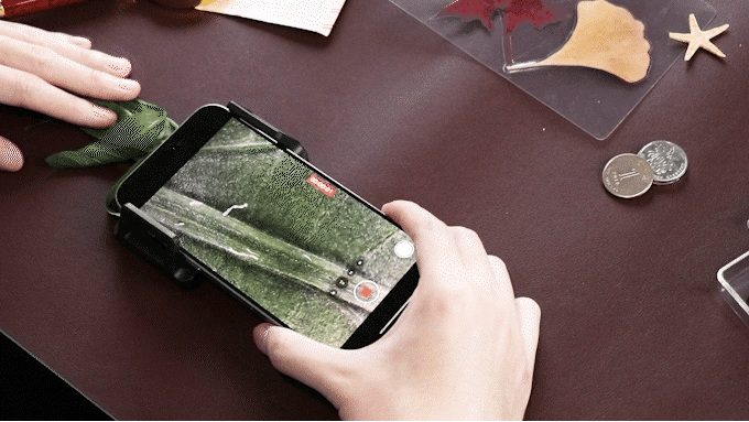 It can observe at 200x magnification, and then continue to zoom in on details through the phone's camera's own zoom function.